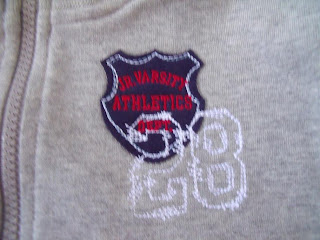 Embroidered "28" with sewn-on "Jr Varsity Athletics Dept" patch.
